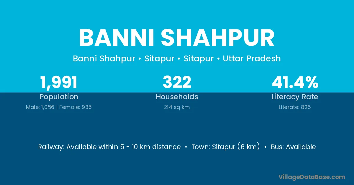 Sitapur (6 km) is the nearest town to Banni Shahpur village for major economic activities and is located approximately 6 km away.