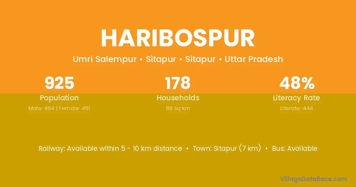 Sitapur (7 km) is the nearest town to Haribospur village for major economic activities and is located approximately 7 km away.