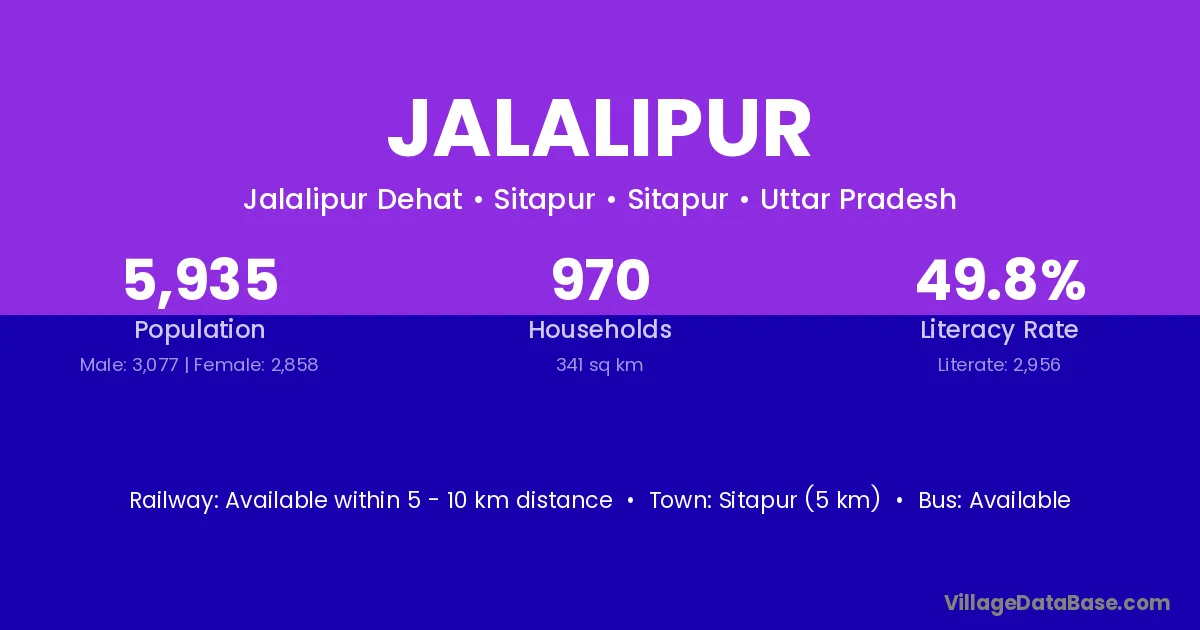 Sitapur (5 km) is the nearest town to Jalalipur village for major economic activities and is located approximately 5 km away.