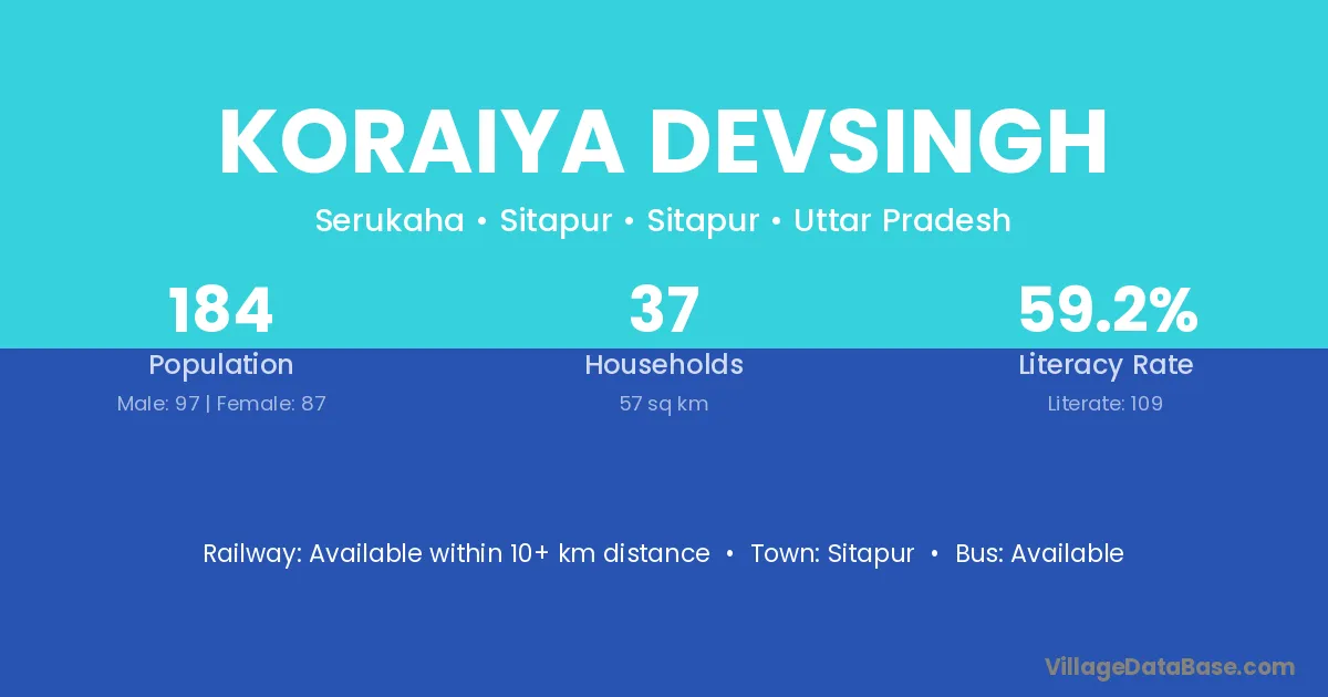 Koraiya Devsingh village has a total population of 184 people, of which 97 are males and 87 are females.