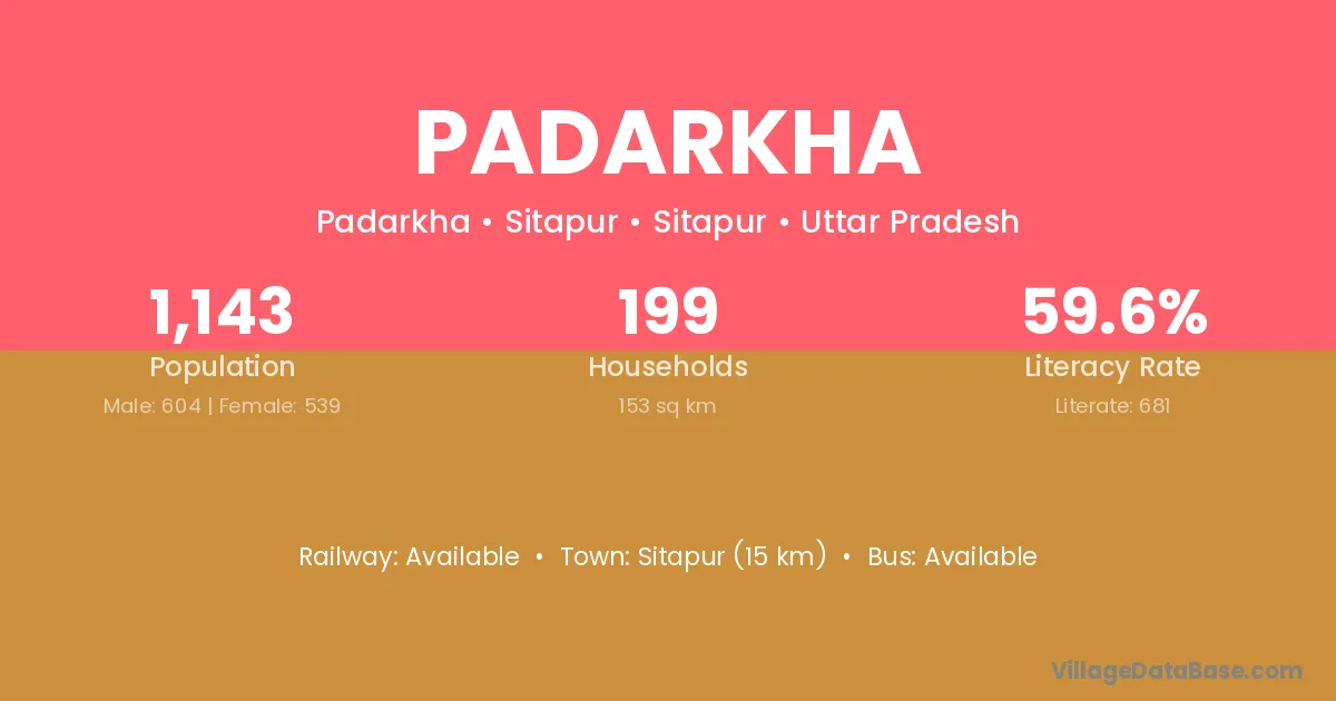 Sitapur (15 km) is the nearest town to Padarkha village for major economic activities and is located approximately 15 km away.
