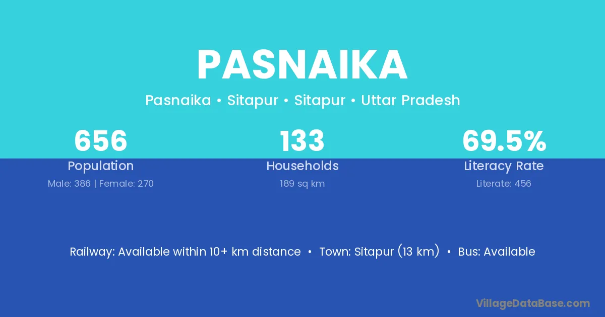 Sitapur (13 km) is the nearest town to Pasnaika village for major economic activities and is located approximately 13 km away.
