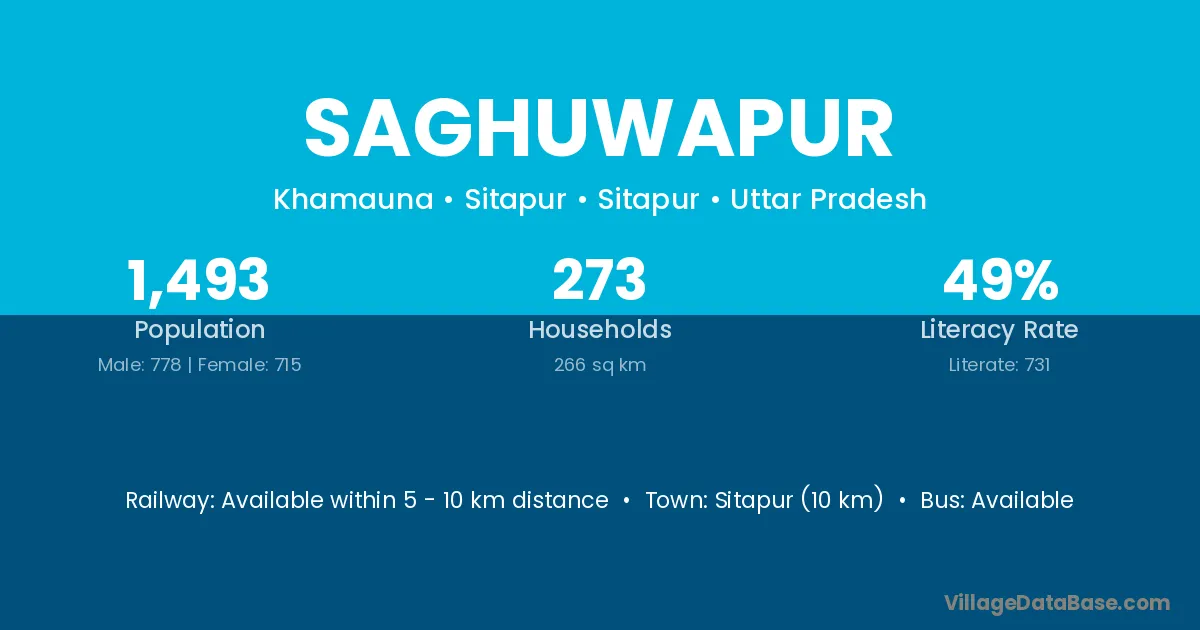 Sitapur (10 km) is the nearest town to Saghuwapur village for major economic activities and is located approximately 10 km away.