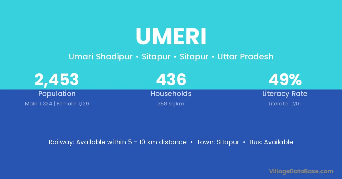 Umeri village has a total population of 2,453 people, of which 1,324 are males and 1,129 are females.