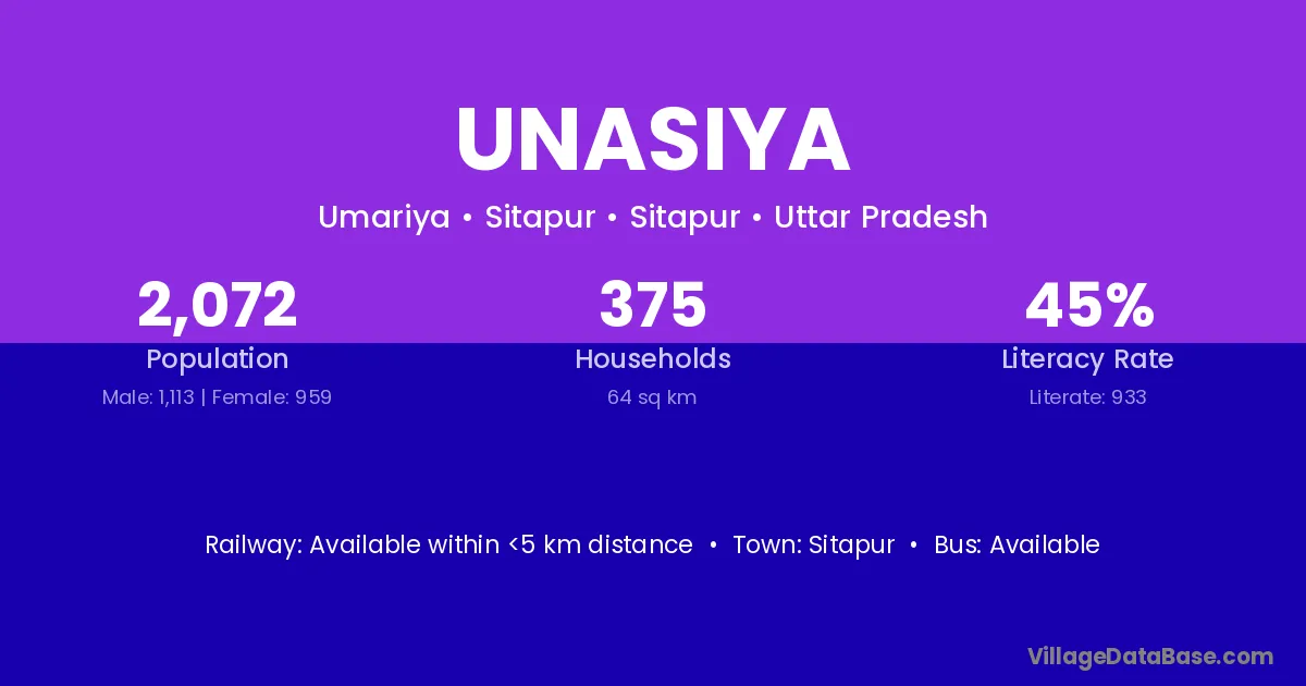 Sitapur is the nearest town to Unasiya village for major economic activities