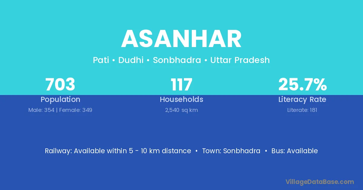 Sonbhadra is the nearest town to Asanhar village for major economic activities
