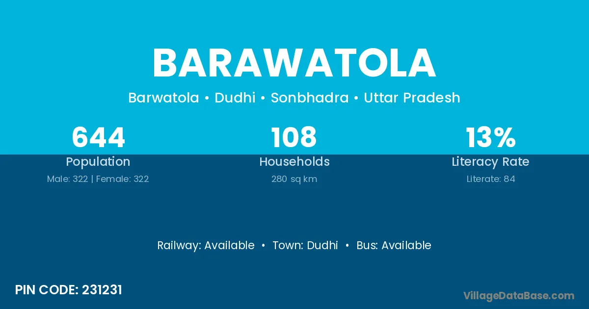 Barawatola village has a total population of 644 people, of which 322 are males and 322 are females.