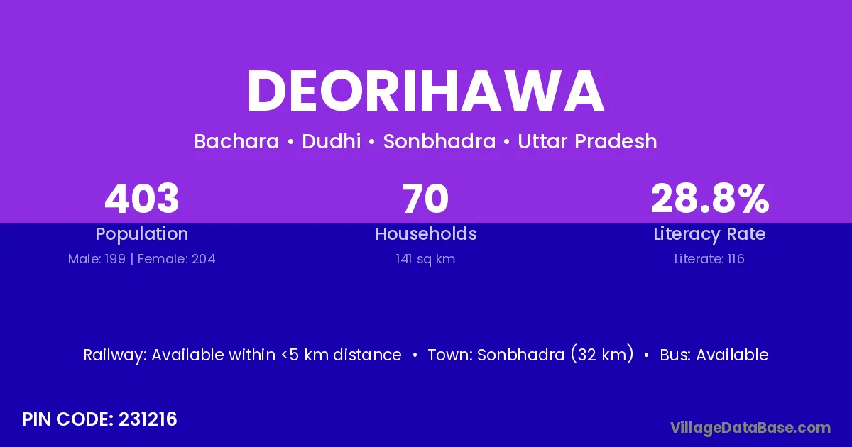 Deorihawa village has a total population of 403 people, of which 199 are males and 204 are females.