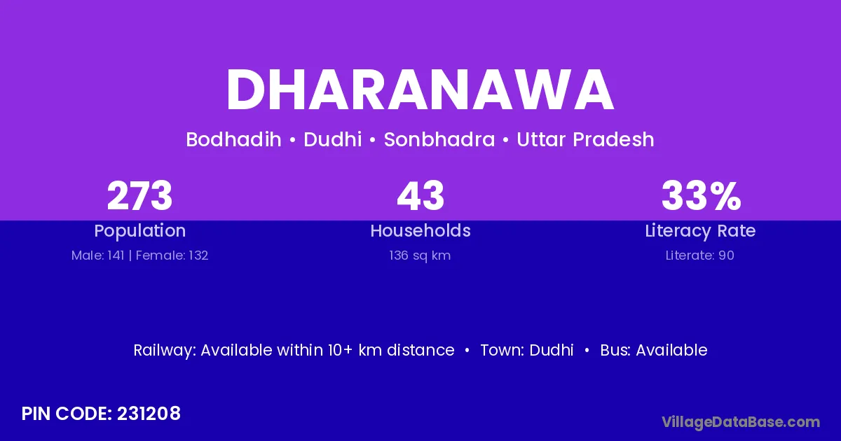 Dharanawa village has a total population of 273 people, of which 141 are males and 132 are females.