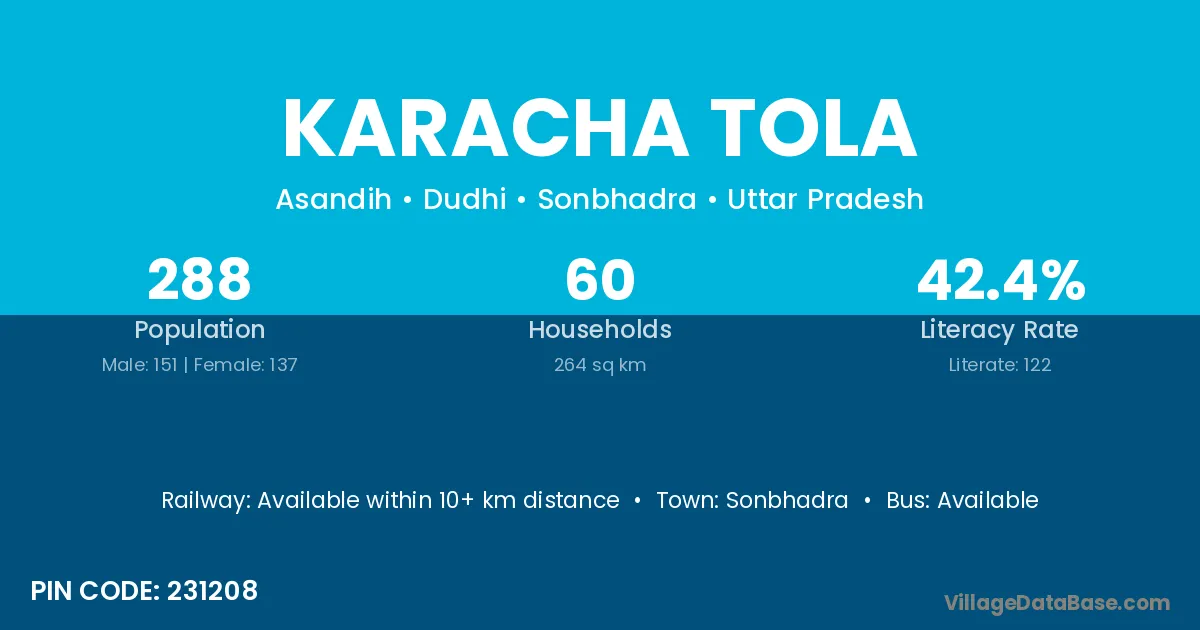 Sonbhadra is the nearest town to Karacha Tola village for major economic activities