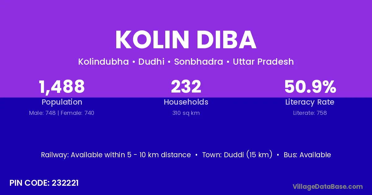 Kolin Diba village is located in the Dudhi Tehsil of the Sonbhadra district in Uttar Pradesh .
