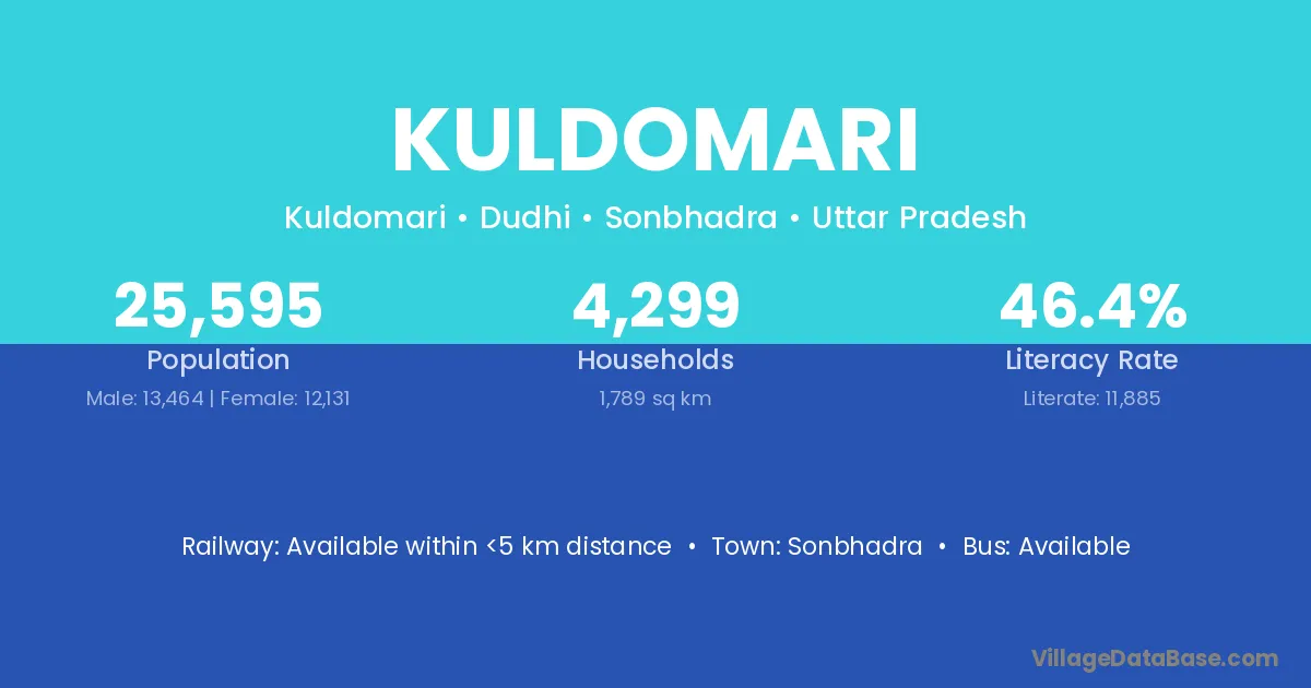 Kuldomari village has a total population of 25,595 people, of which 13,464 are males and 12,131 are females.