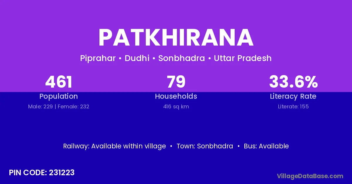 Sonbhadra is the nearest town to Patkhirana village for major economic activities