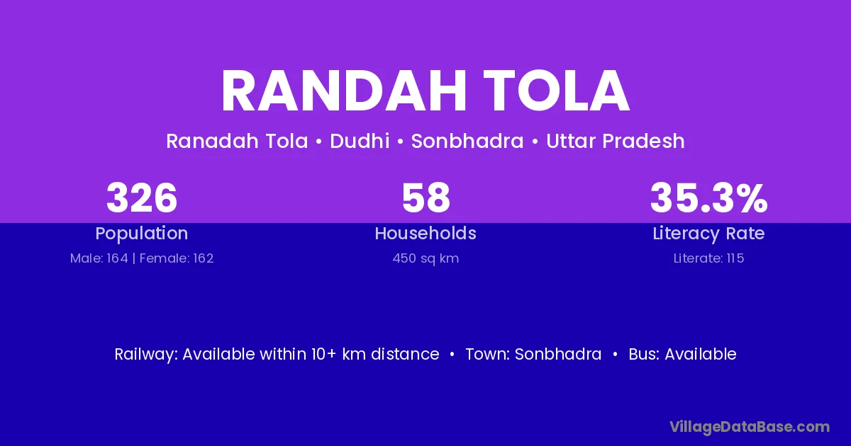 Randah Tola village has a total population of 326 people, of which 164 are males and 162 are females.