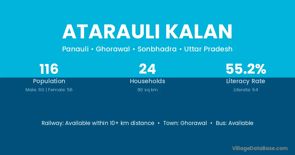 Atarauli Kalan village has a total population of 116 people, of which 60 are males and 56 are females.