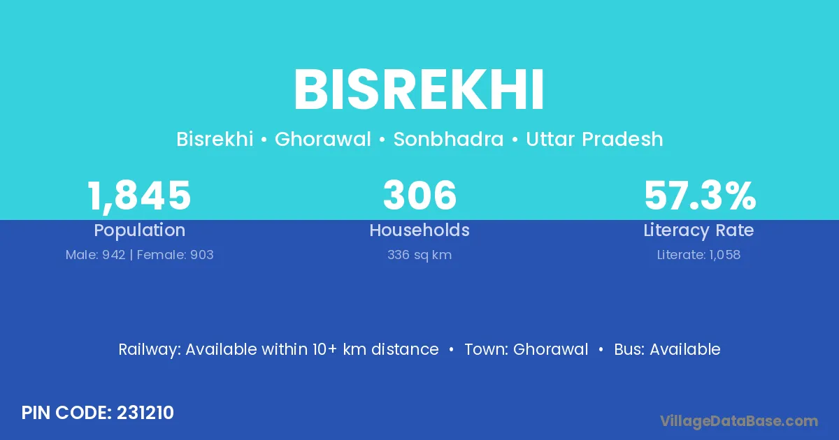 Bisrekhi village has a total population of 1,845 people, of which 942 are males and 903 are females.