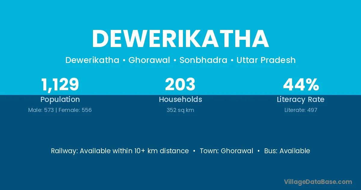 Dewerikatha village has a total population of 1,129 people, of which 573 are males and 556 are females.