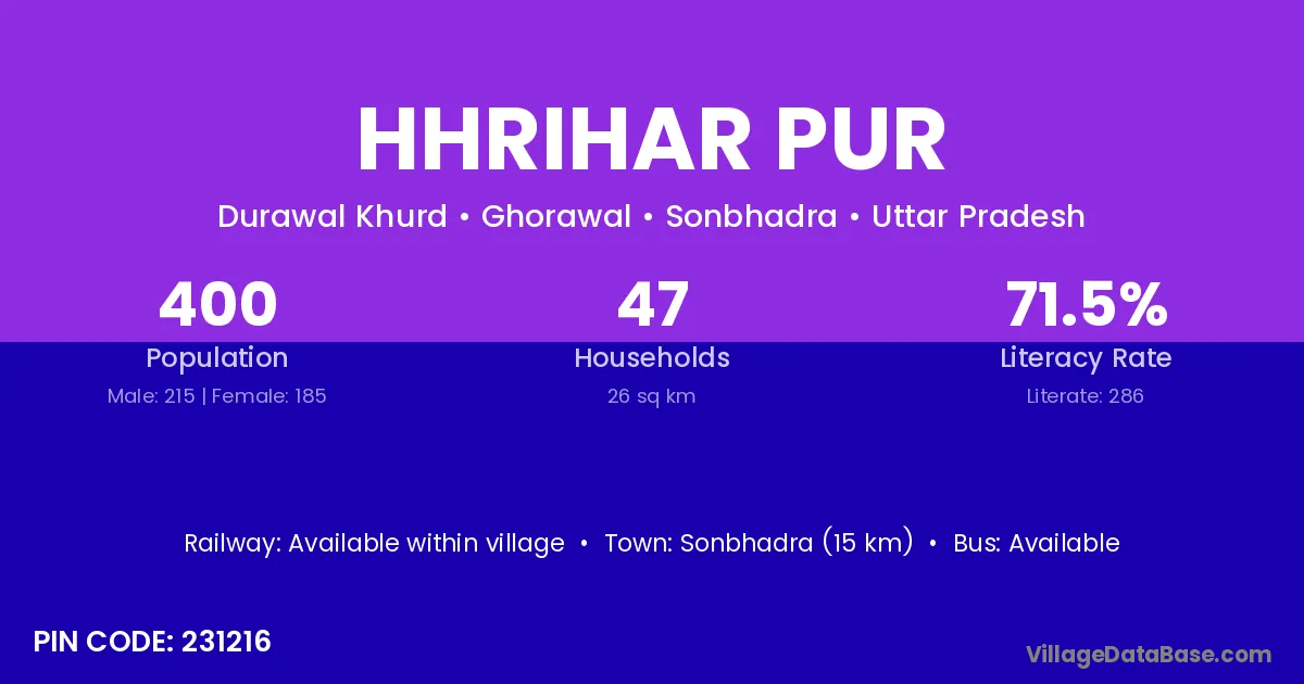 Hhrihar Pur village has a total population of 400 people, of which 215 are males and 185 are females.