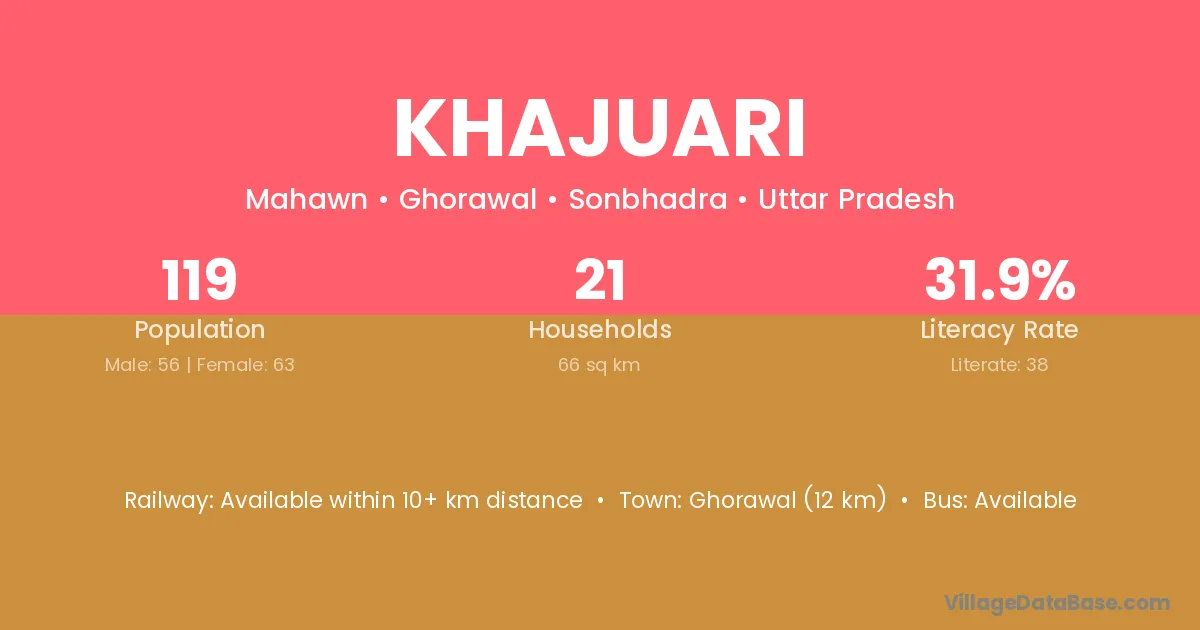 Ghorawal (12 km) is the nearest town to Khajuari village for major economic activities and is located approximately 12 km away.