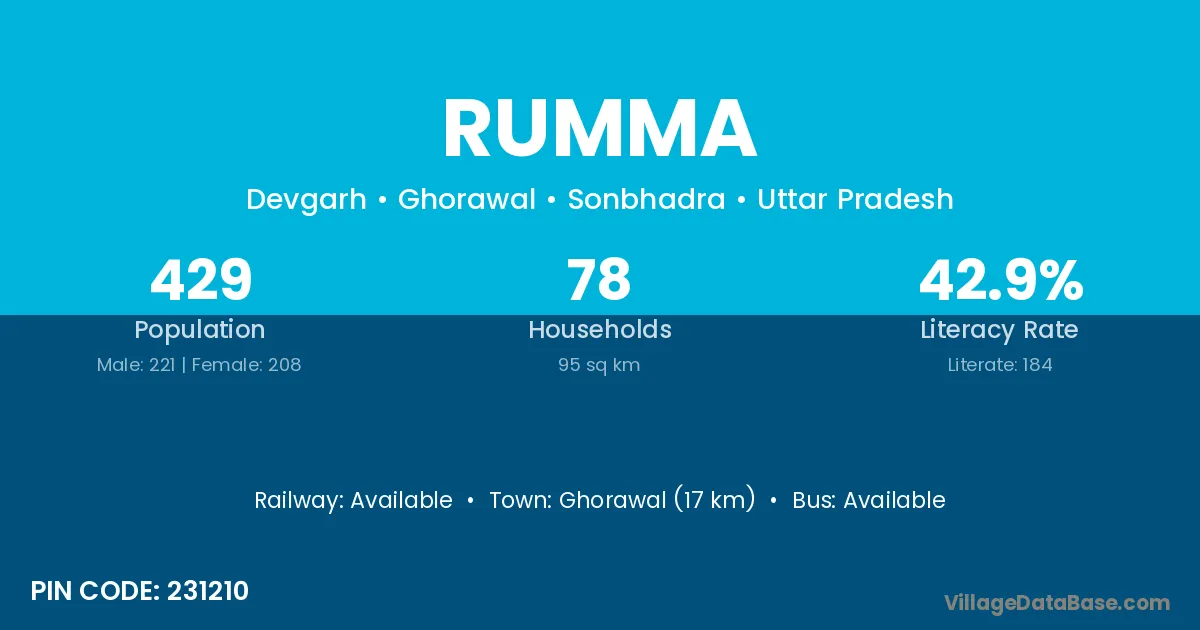 Ghorawal (17 km) is the nearest town to Rumma village for major economic activities and is located approximately 17 km away.
