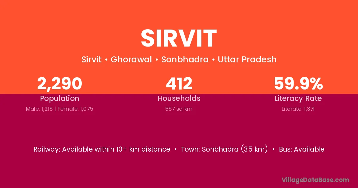 Sonbhadra (35 km) is the nearest town to Sirvit village for major economic activities and is located approximately 35 km away.