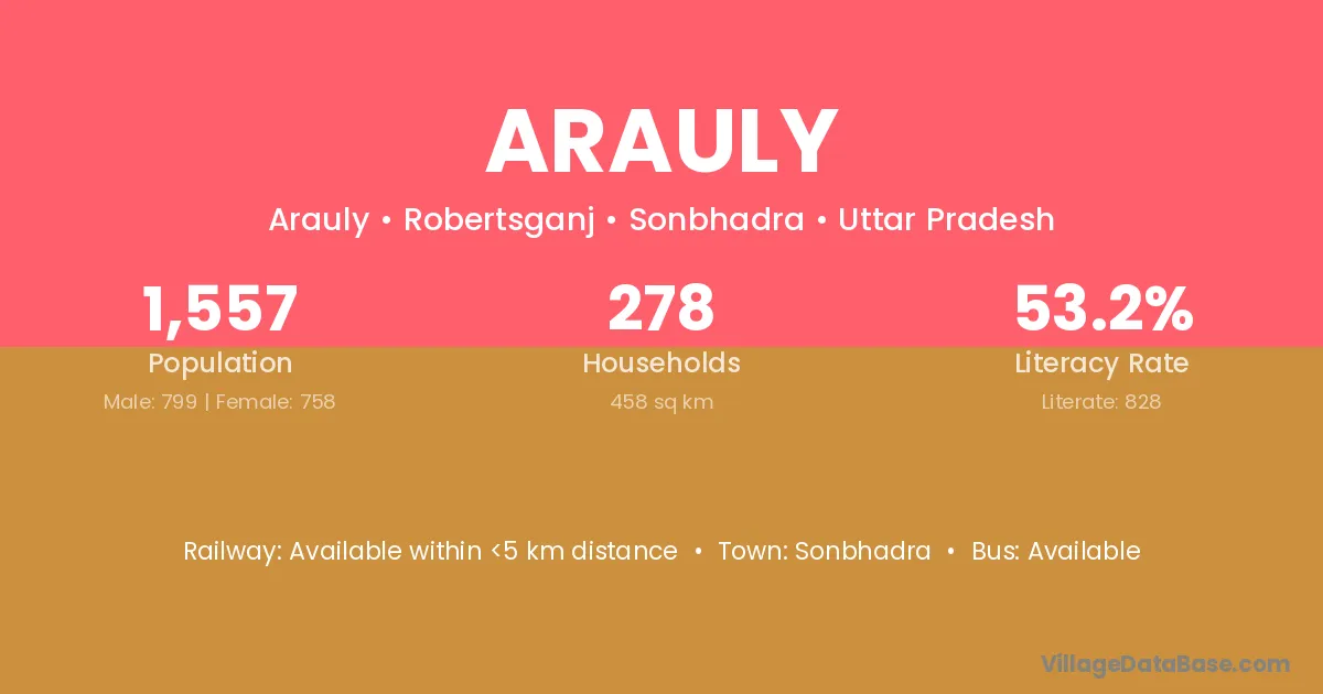 Arauly village has a total population of 1,557 people, of which 799 are males and 758 are females.