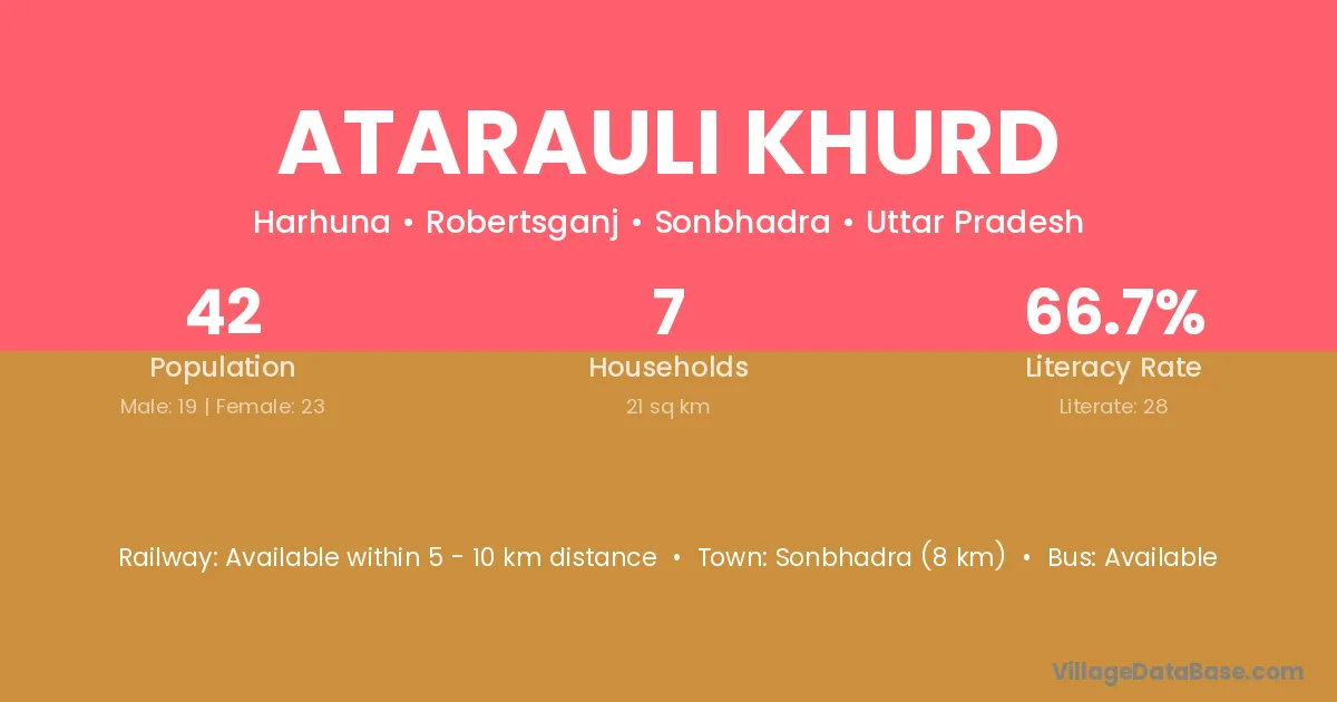 Sonbhadra (8 km) is the nearest town to Atarauli Khurd village for major economic activities and is located approximately 8 km away.