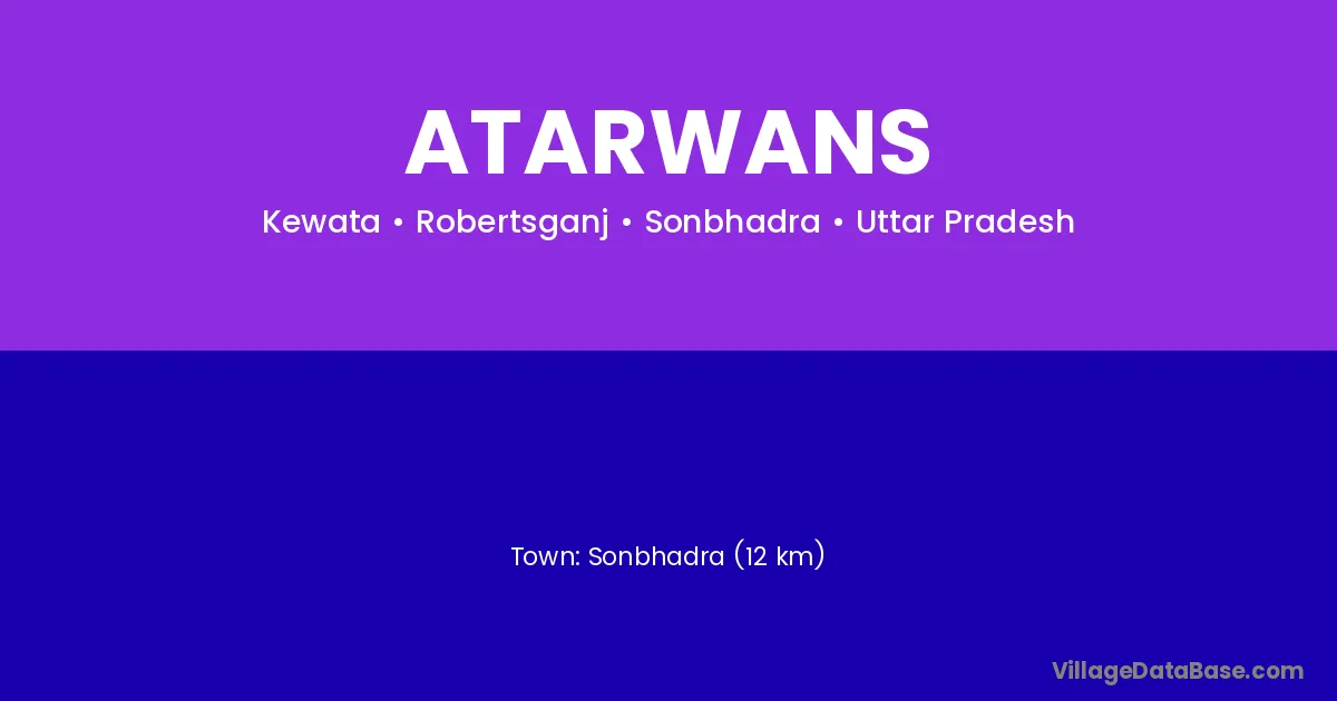 Sonbhadra (12 km) is the nearest town to Atarwans village for major economic activities and is located approximately 12 km away.