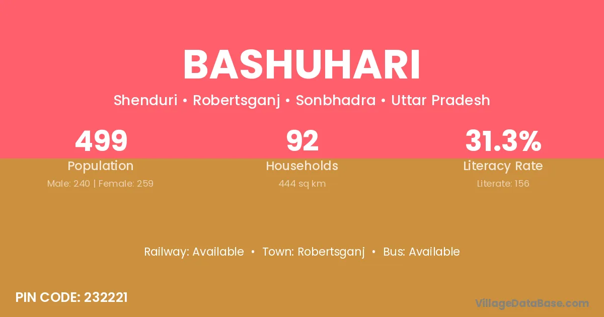 Robertsganj is the nearest town to Bashuhari village for major economic activities