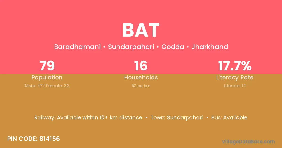 Sonbhadra (23 km) is the nearest town to Bat village for major economic activities and is located approximately 23 km away.
