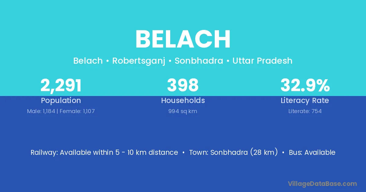 Sonbhadra (28 km) is the nearest town to Belach village for major economic activities and is located approximately 28 km away.