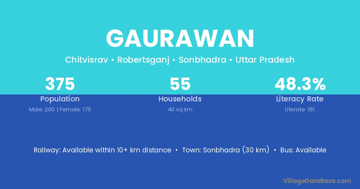 Sonbhadra (30 km) is the nearest town to Gaurawan village for major economic activities and is located approximately 30 km away.