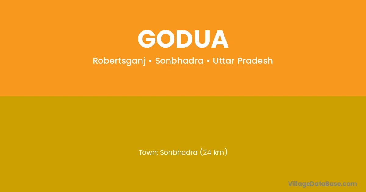 Sonbhadra (24 km) is the nearest town to Godua village for major economic activities and is located approximately 24 km away.