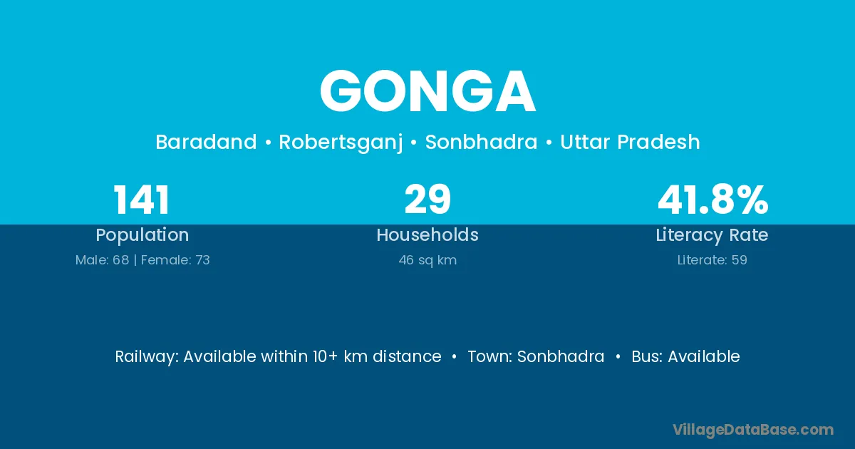 Sonbhadra is the nearest town to Gonga village for major economic activities