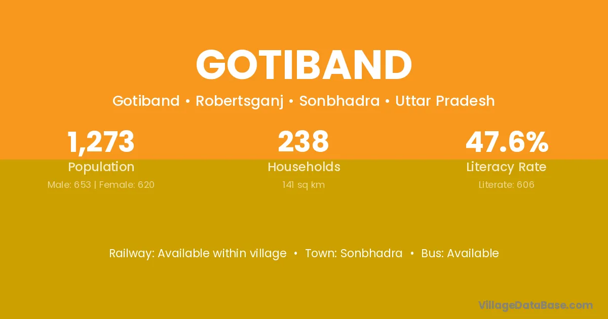 Sonbhadra is the nearest town to Gotiband village for major economic activities