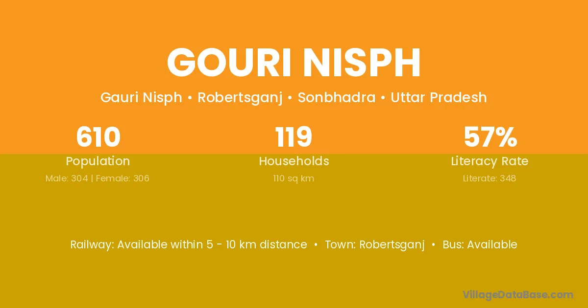 Gouri Nisph village has a total population of 610 people, of which 304 are males and 306 are females.