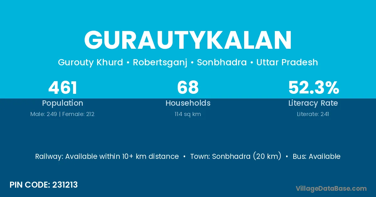 Sonbhadra (20 km) is the nearest town to Gurautykalan village for major economic activities and is located approximately 20 km away.