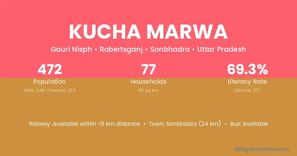 Kucha Marwa village has a total population of 472 people, of which 249 are males and 223 are females.