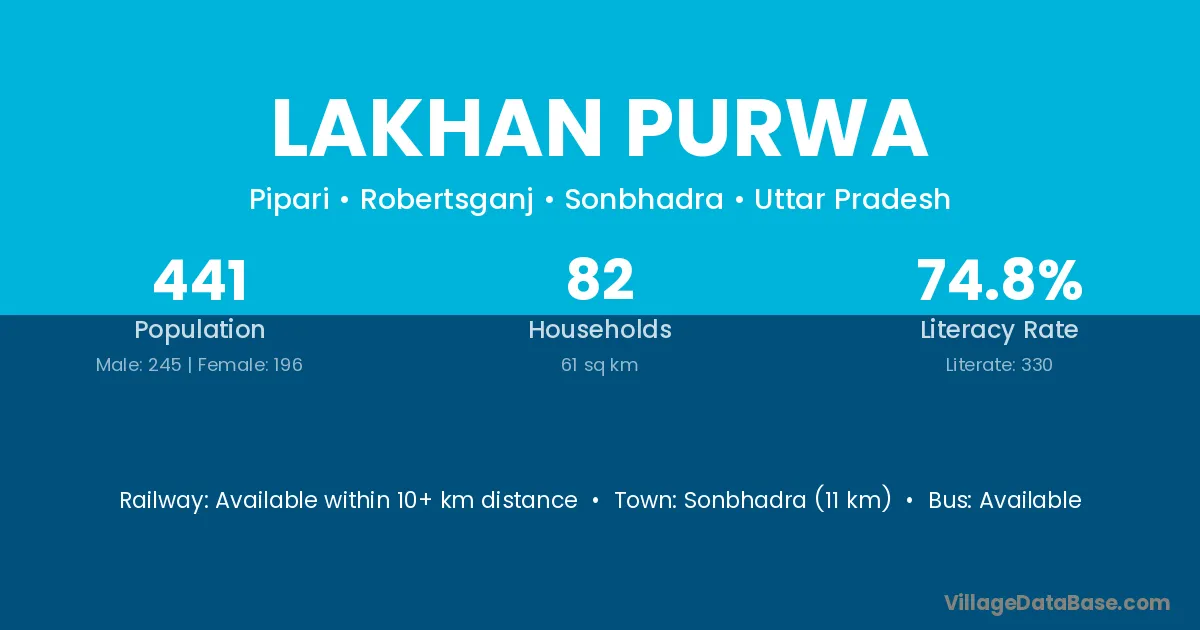 Sonbhadra (11 km) is the nearest town to Lakhan Purwa village for major economic activities and is located approximately 11 km away.
