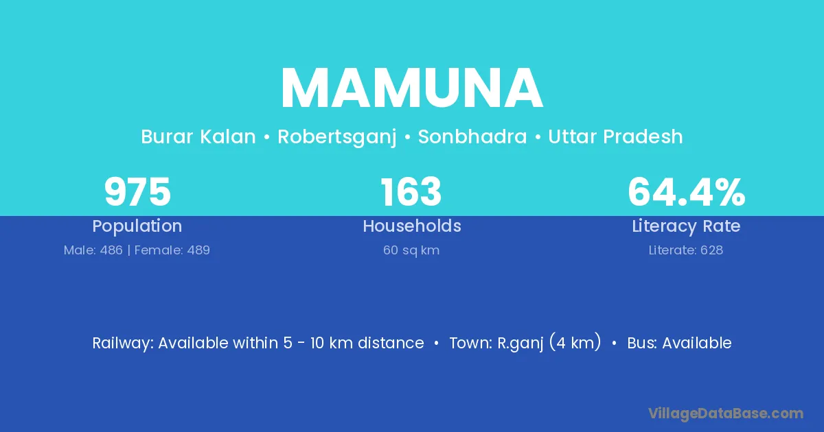 Mamuna village has a total population of 975 people, of which 486 are males and 489 are females.