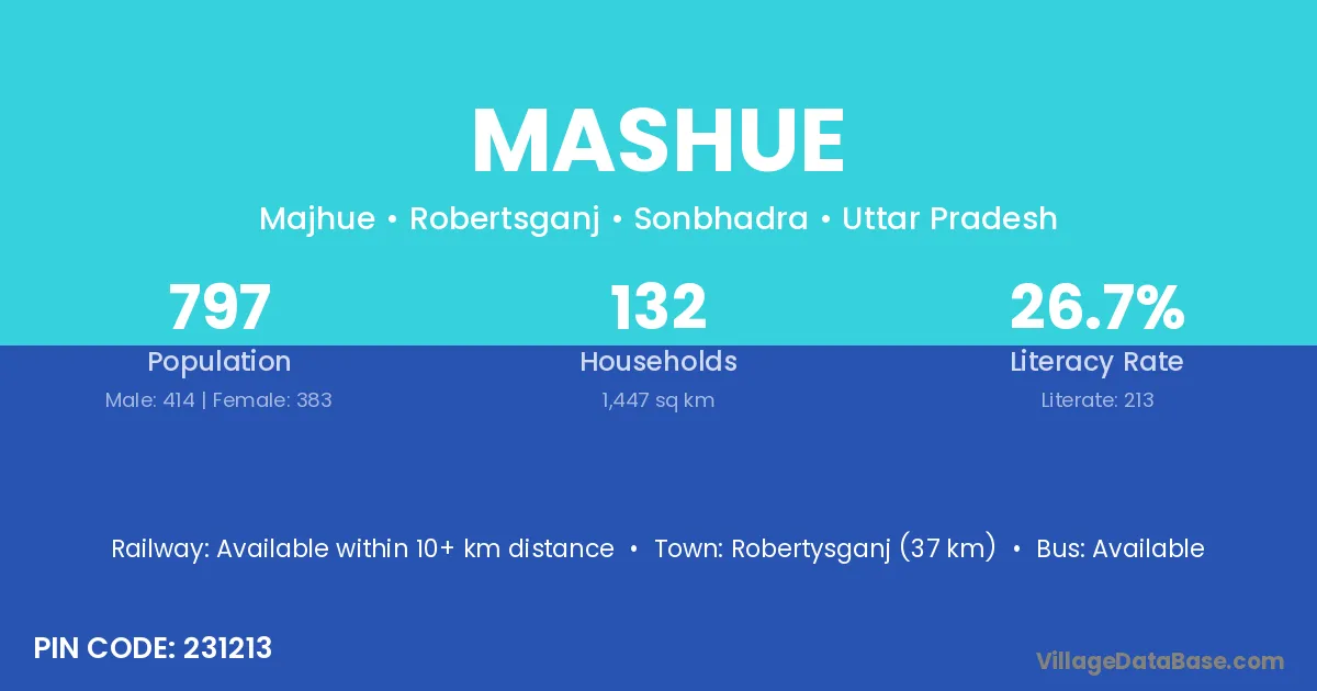 Robertysganj (37 km) is the nearest town to Mashue village for major economic activities and is located approximately 37 km away.