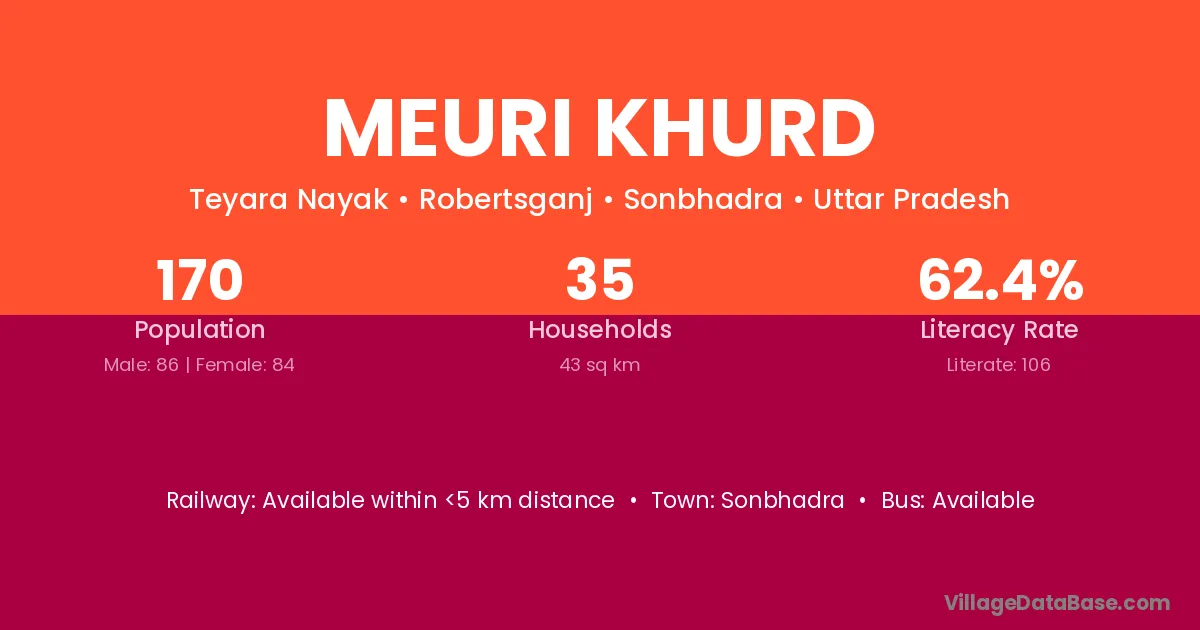 Meuri Khurd village has a total population of 170 people, of which 86 are males and 84 are females.