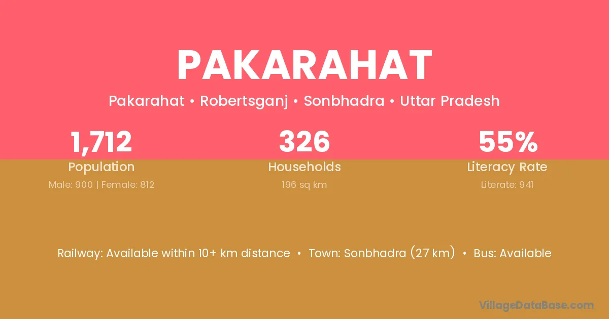Sonbhadra (27 km) is the nearest town to Pakarahat village for major economic activities and is located approximately 27 km away.