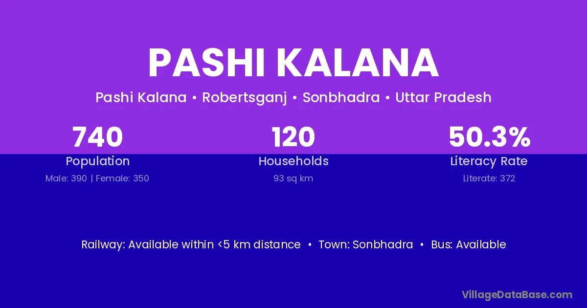 Pashi Kalana village has a total population of 740 people, of which 390 are males and 350 are females.