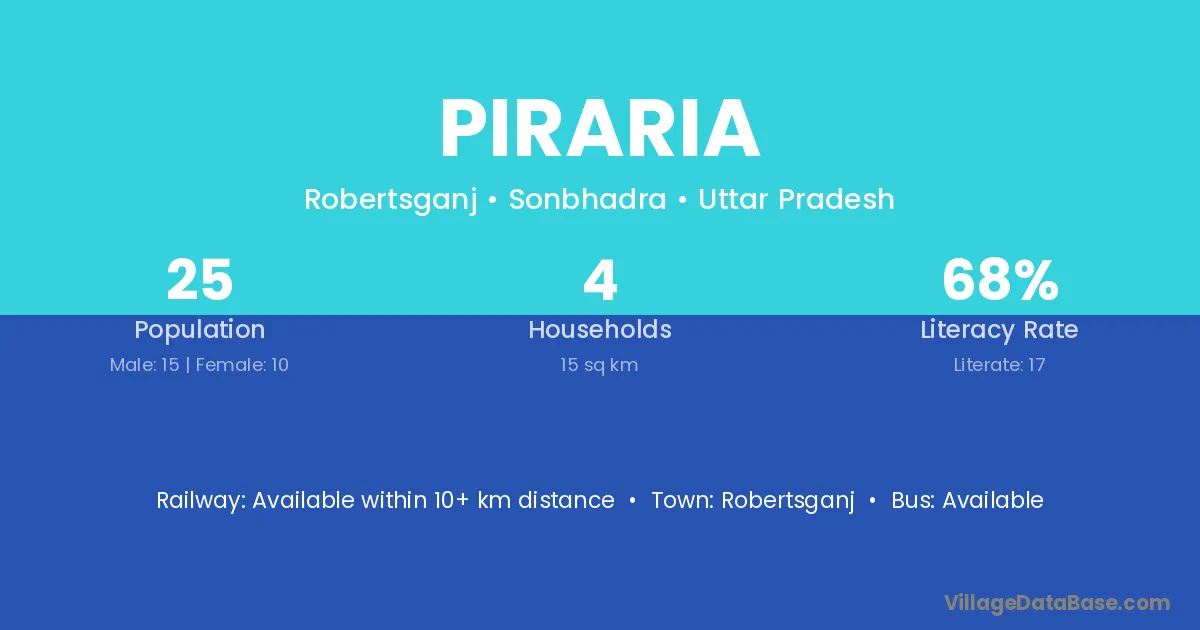 Robertsganj is the nearest town to Piraria village for major economic activities