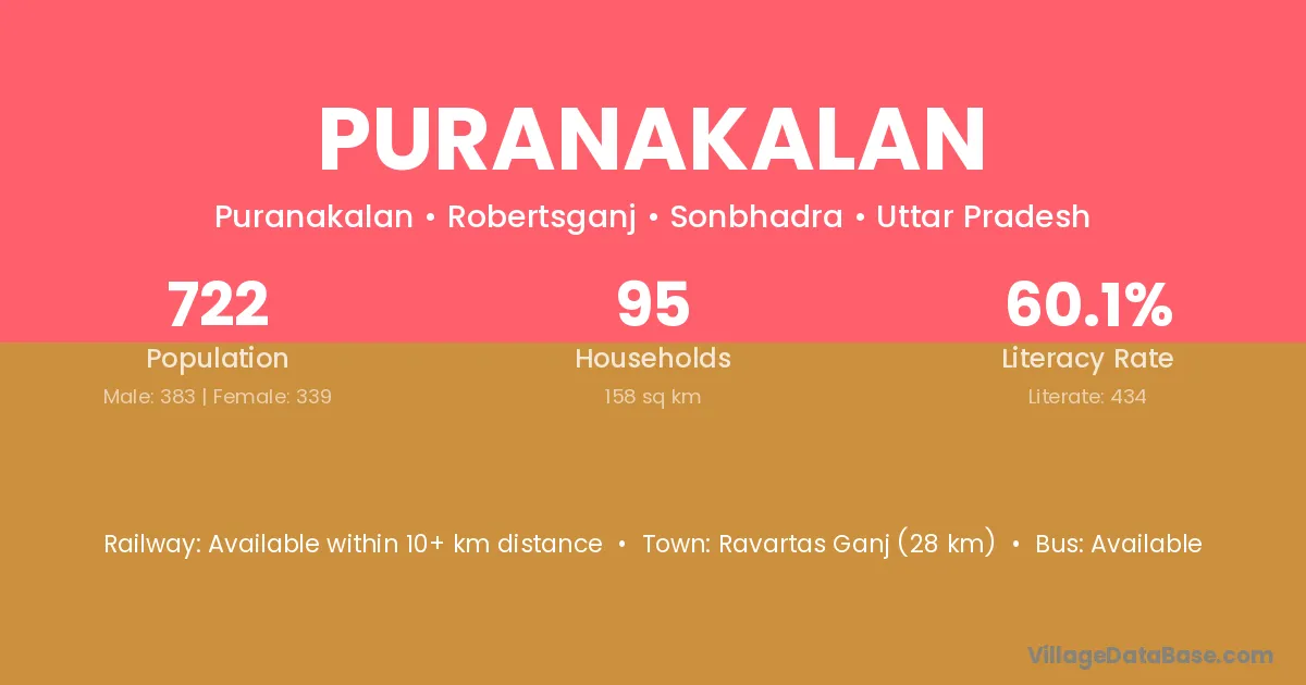 Puranakalan village has a total population of 722 people, of which 383 are males and 339 are females.