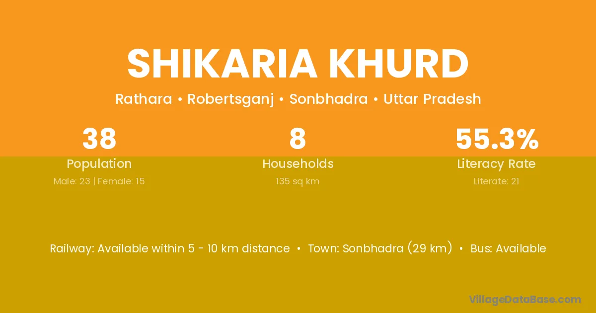 Sonbhadra (29 km) is the nearest town to Shikaria Khurd village for major economic activities and is located approximately 29 km away.
