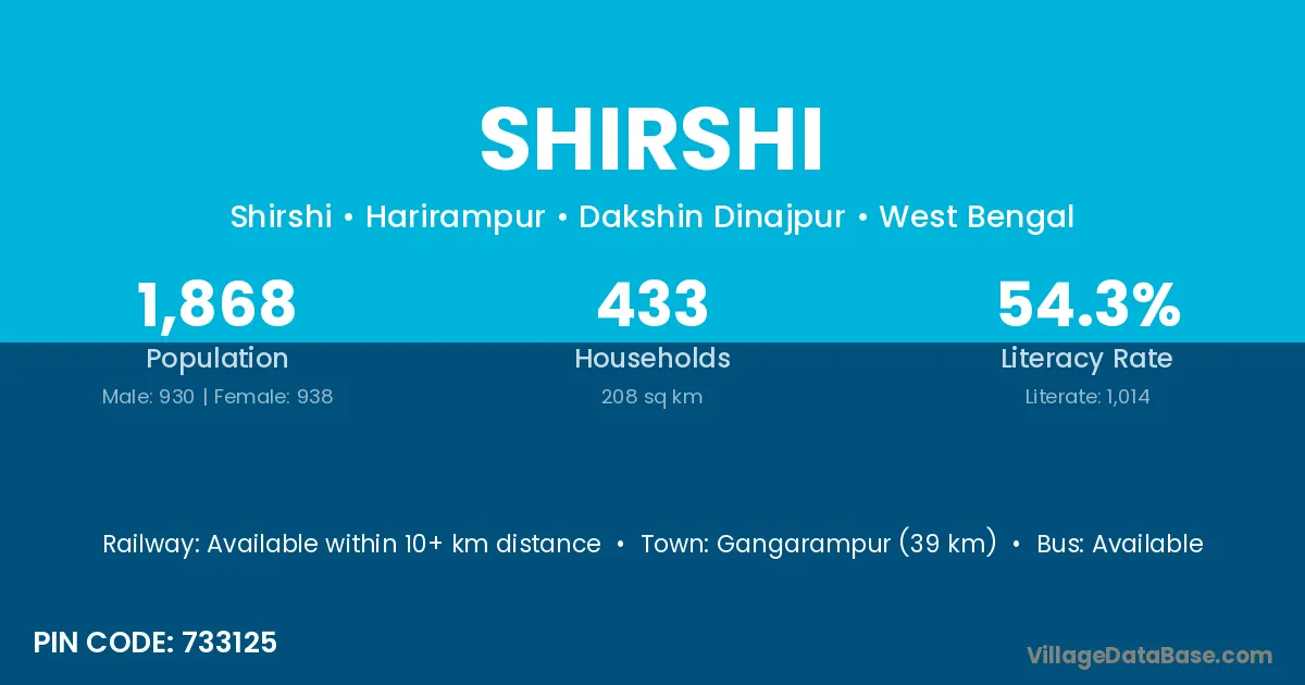 According to Census 2011 information, the village code of Shirshi village is 231213.