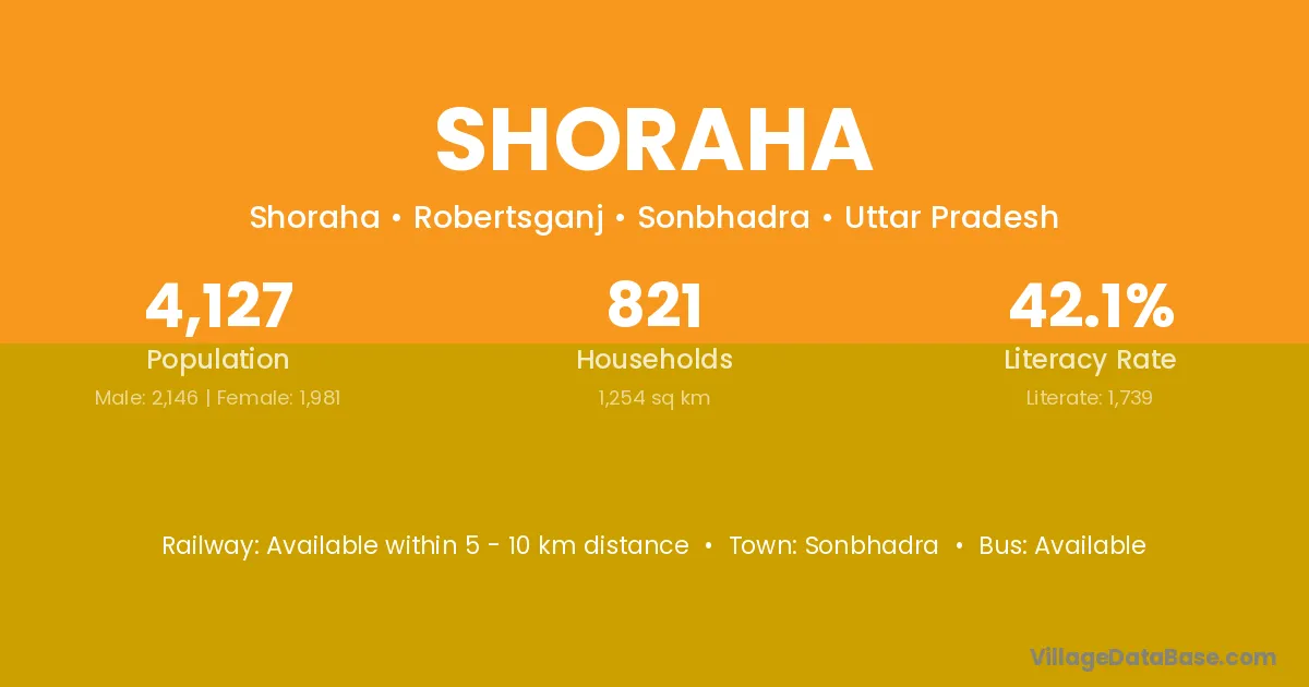Shoraha village has a total population of 4,127 people, of which 2,146 are males and 1,981 are females.