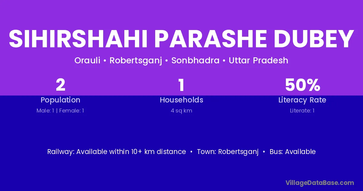 Sihirshahi Parashe Dubey village has a total population of 2 people, of which 1 are males and 1 are females.